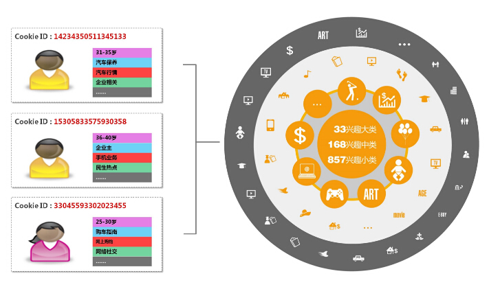 千人千面根据淘宝网站的解释为:“定向推广依靠淘宝网庞大的数据库,构建出买家的兴趣模型。它能从细分类目中抓取那些特征与买家兴趣点匹配的推广宝贝,为展现在目标客户浏览的网页上,帮助您锁定潜在买家,实现精准营销。” 淘宝经过这几年个性化搜索的发展,已经全面实现了千人千面。